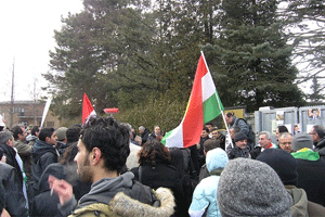 له خۆپیشاندانهکهدا که ژمارهیهکی بهرچاوی کوردانی ئهو وڵاته بهشدارییان تێداکرد، ئیدانهی تهقهکردن و دهستگیرکردنی هاوڵاتیانی کوردستانیان کرد لهلایهن چهکدارهکانی سهر به دهسهڵاتهوه.