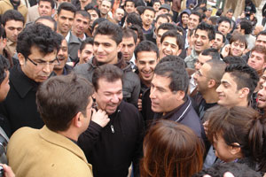 له ههمانکاتدا پاش کۆبونهوهیان لهگهڵ خوێندکاران و پێشکهشکردنی چهند وتارێک، ههرسێ نوسهرو رۆشنبیر لهگهڵ خوێندکاراندا رو له سهرای ئازادی دهکهن و پشتیوانی و پشتگیری خۆیان بۆ خۆپیشاندهران و خهڵکی کوردستان دوپات دهکهنهوه.