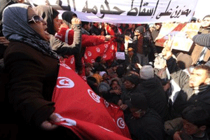 خۆپیشاندان و ناڕهزاییهکانی هاوڵاتیانی وڵاتی تونس بهردهوامی ههیهو ههروهها بههۆی بونی ژمارهیهک کاربهدهستی سهر بهدهسهڵاتی پێشو (بن عهلی) له حکومهتی کاتیدا، هاوڵاتیان داوای ههڵوهشاندنهوهی حکومهت دهکهن.