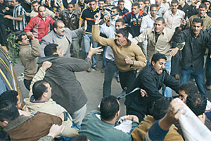 سهرلهبهیانی دوێنێ (چوارشهممه) سهدهها كهسی لایهنگری حوسنی موبارهك پهلاماری خۆپیشاندهرانیاندا له گۆڕهپانی تهحریر و تا سهرلهبهیانی ئهمڕۆ پێكدادان بهردهوام بو.