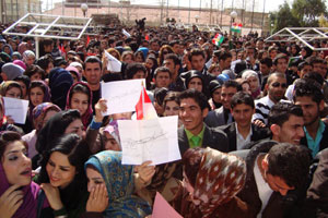 پهیامنێرمان له كهلارهوه پێی راگهیاندین، له دوای نوێژی ههینیهوه خۆپیشاندان دهستیپێكردوهو بهشێوهیهكی بهردهوامیش جهماوهری خۆپیشاندهر رو له زیادبون دهكهن.